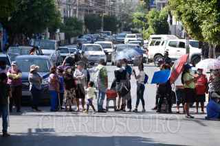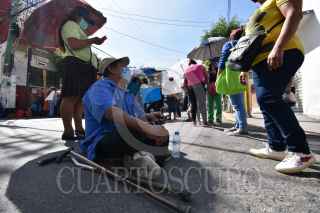 CHILPANCINGO, GUERRERO, 22JULIO2020.- Discapacitados y madres solteras, bloquearon el cruce de la avenida Juan N. Álvarez y la calle Cristóbal Colón para exigir al gobierno federal y municipal, se cumpla con la entrega de despensas y apoyos a estos sectores vulnerables. Pidiendo la intervención del gobernador Héctor Astudillo Flores para dar solución a este problema, señalando que, en su momento, cuando se les pidió el voto lo apoyaron. Integrantes del Frente de Grupos Vulnerables y Personas con Discapacidad, bloquearon esta vialidad cerca de las 10:30 horas, unas 50 personas lideradas por Silvestre Rodríguez Fernández, cerraron la circulación en la entrada al Paso a Desnivel para denunciar la falta de apoyos. El dirigente de la agrupación expresó que, por acuerdo entre el gobierno estatal y municipal, la agrupación recibiría del DIF Chilpancingo alrededor de unas 60 despensas mensuales. Sin embargo, este apoyo en especie que les otorgaría el municipio, no lo han recibido desde el mes de enero, antes de que iniciara la emergencia sanitaria por Covid-19. FOTO: DASSAEV TÉLLEZ ADAME/CUARTOSCURO.COM