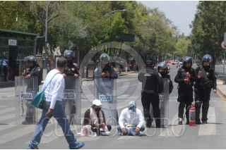 CIUDAD DE MÉXICO, 22JULIO2020.- Maestros del Estado de México que demandan asignación de plazas bloquearon los cruces de las avenidas Reforma e Hidalgo, granaderos hicieron acto de presencia pero solo vigilaron a distancia. FOTO: ARMANDO MONROY/CUARTOSCURO.COM