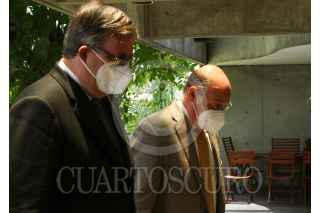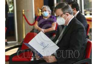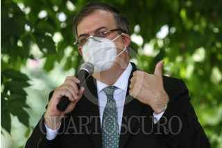 CIUDAD DE MEXICO, 23JULIO2020.- Marcelo Ebrard Casaubon, secretario de Relaciones Exteriores; Héctor Valle Meste, presidente ejecutivo de Funsalud y David Kershenobich Stalnikowitz director general del Instituto Nacional de Ciencias Médicas y Nutrición Salvador Zubirán, durante la presentación de resultados de la Fundación Mexicana para la Salud (Funsalud), en donde destacaron la entrega de ventiladores a hospitales y la donación de insumos para personal médico, esto en la sede del instituto. FOTO: ROGELIO MORALES /CUARTOSCURO.COM
