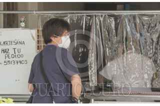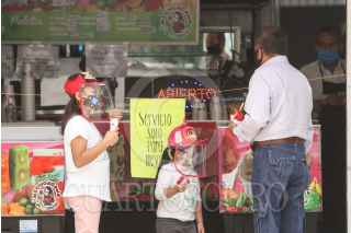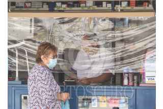 CIUDAD DE MEXICO, 23JULIO2020.- En incremento los negocios que adoptan las nuevas medias sanidad en sus comercios. Utilizando película transparente, plásticos o cordones que eviten aglomeraciones en sus lugares de venta es como las personas tanto vendedores como compradores de adaptan a la nueva normalidad. FOTO: ROGELIO MORALES /CUARTOSCURO.COM