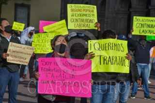 Ex trabajadores del Seguro Popular se manifestaron en Palacio de Gobierno exigiendo ser recontratados por el Instituto de Salud para el Bienestar (INSABI) después de 7 meses las autoridades de salud siguen sin darles una respuesta, y su situación económica se ha visto complicada por el desempleo y la contingencia, continuarán con las movilizaciones hasta obtener una respuesta satisfactoria. FOTO: CRISANTA ESPINOSA AGUILAR /CUARTOSCURO.COM