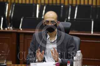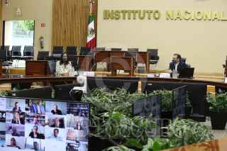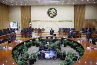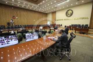 CIUDAD DE MÉXICO, 23JULIO2020.- Lorenzo Córdova, consejero presidente del Instituto Nacional Electoral, tomó protesta a los cuatro nuevos consejeros por un periodo de nueve años en una sesión con modalidad semipresencial. Norma Irene de la Cruz Magaña, Carla Humphrey y José Martín Faz, estuvieron presentes en la sala del Consejo General del INE mientras que Uuc-kib Espadas lo hizo de manera virtual. FOTO: INE/CUARTOSCURO.COM