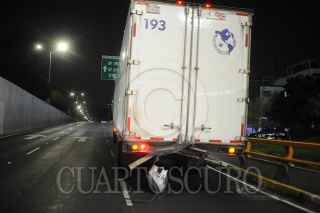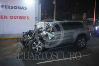Ciudad de México, 24 julio 2020. Una mujer que conducía una camioneta blindada impacto contra la parte trasera de un tráiler, al circular por Rio Churubusco bajo el puente de Tlalpan en la colonia Portales Norte. El blindaje de su vehículo le salvo la vida. Foto: Luis Carbayo/cuartoscuro.com