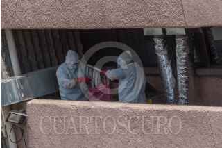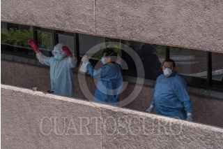 CIUDAD DE MÉXICO, 24JULIO2020.- Personas permanecen en las inmediaciones Hospital de Infectología La Raza para esperar noticias sobre sus familiares internados por covid-19. Personal médico realiza procesos de sanitización y retiro de material de residuos y material biológico-infeccioso. FOTO: MARIO JASSO /CUARTOSCURO.COM
