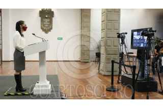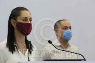 CIUDAD DE MÉXICO, 24JULIO2020.- En conferencia de prensa, la jefa de gobierno de la Ciudad de México, Claudia Sheinbaum, anunció que la capital permanecerá en semáforo naranja debido a un incremento en las hospitalizaciones. La mandataria estuvo acompañada por Alfonso Suárez del Real, secretario capitalino de Cultura, y José Antonio Peña Merino, titular de la Agencia Digital de Innovación Pública. FOTO: ESPECIAL /CUARTOSCURO.COM