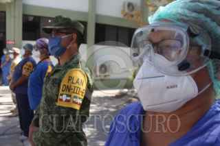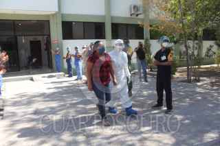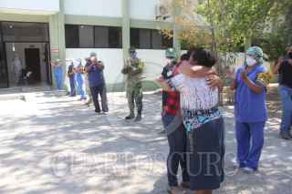 CIUDAD JUÁREZ, CHIHUAHUA, 24JULIO2020.- “Estoy muy feliz, lo primero que voy a hacer es llegar y abrazar a mis hijos”, fue lo que dijo Adelaida Domínguez al salir esta mañana de la Unidad Operativa de Hospitalización Covid -19, en las instalaciones de la Guarnición Militar, entre aplausos del personal por el que fue atendida. La madre de tres niños de nueve, seis y tres años de edad, originaria de Mérida, Yucatán, dijo que comenzó a tener mucho dolor de cuerpo y temperatura, pero al ver que los síntomas empeoraron y tras haberse enterado en las noticias de la instalación del hospital militar, decidió acudir para pedir ayuda. FOTO: NACHO RUIZ /CUARTOSCURO.COM