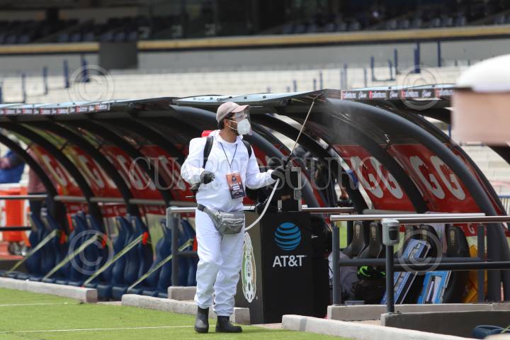CIUDAD DE MÉXICO, 26JULIO2020.- Los Pumas inician el torneo en contra del Querétaro en el Estadio Olímpico Universitario, de la Liga MX bautizada como Guard1anes, cuyo arranque ha sido sin afición en cumplimiento de las medidas sanitarias por la pandemia de Covid-19. Los felinos lograron una victoria de 3-2, sus anotaciones estuvieron a cargo de un doblete de Juan Ignacio Dinenno y de un disparo de Juan Manuel Iturbe que rebotó en un contrario clavandose en la portería. FOTO: MOISÉS PABLO/CUARTOSCURO.COM