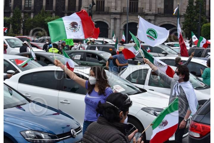 Por quinta ocasión integrantes de FRENA salieron a las calles en sus automóviles para exigir la renuncia del presidente Andrés Manuel López Obrador, en caravana llegaron a la Plaza de los Mártires en donde se estacionaron y ondearon banderas de México al sonido de los mariachis. FOTO: CRISANTA ESPINOSA AGUILAR /CUARTOSCURO.COM