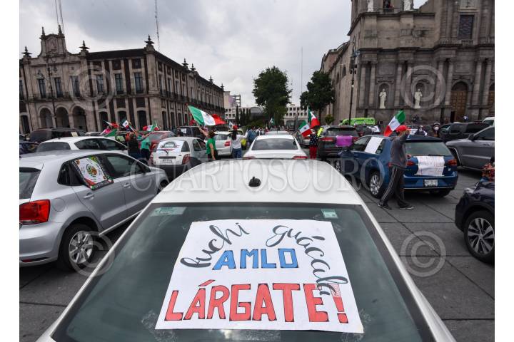 Por quinta ocasión integrantes de FRENA salieron a las calles en sus automóviles para exigir la renuncia del presidente Andrés Manuel López Obrador, en caravana llegaron a la Plaza de los Mártires en donde se estacionaron y ondearon banderas de México al sonido de los mariachis. FOTO: CRISANTA ESPINOSA AGUILAR /CUARTOSCURO.COM