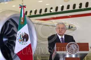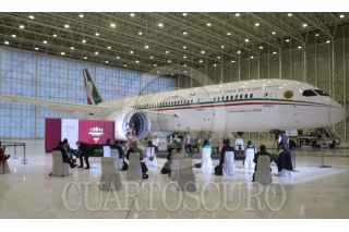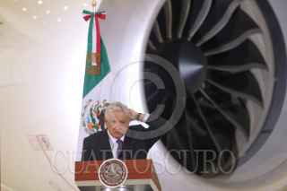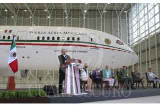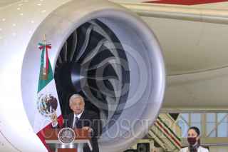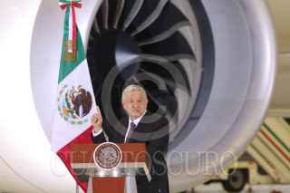 CIUDAD DE MÉXICO, 27JULIO2020.- Andrés Manuel López Obrador, presidente de México, ofreció su conferencia mañanera en donde presentó nuevamente el Avión Presidencial José María Morelos y Pavón. El acto se realizó en el 6/o Grupo Aéreo, en la Zona Federal de Hangares en el Aeropuerto Internacional de la Ciudad de México (AICM). FOTO: GRACIELA LÓPEZ /CUARTOSCURO.COM