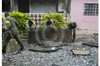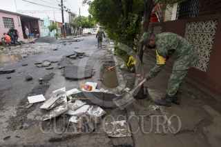 MONTERREY, NUEVO LEÓN, 27JULIO2020.- Durante el paso del Huracán "Hanna" convertido a tormenta tropical, se registraron diversos daños en diferentes puntos del área metropolitana de Monterrey, tales como un socavón en San Pedro, deslaves en la avenida Constitución en Guadalupe y daños en el asfalto y casas en colonias de San Nicolás que se ubican cerca del Arroyo Topo Chico. Se implementó el Plan DN-III en ayuda de los damnificados. FOTO: GABRIELA PÉREZ MONTIEL / CUARTOSCURO.COM