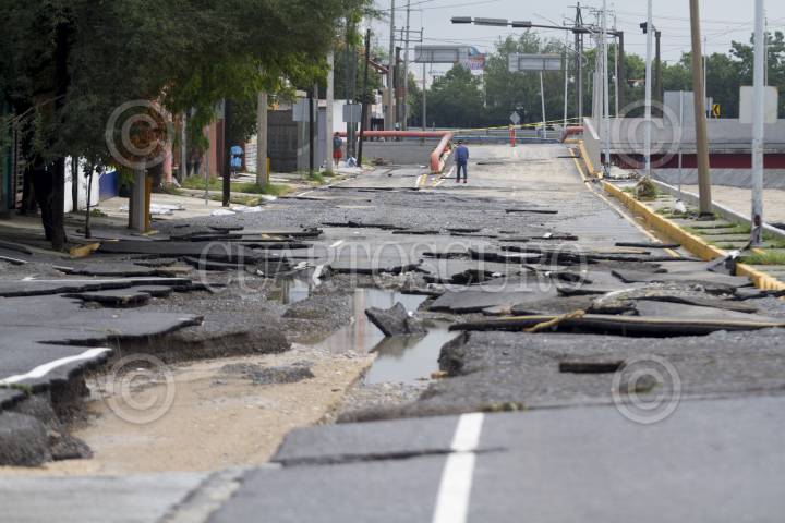 MONTERREY, NUEVO LEÓN, 27JULIO2020.- Durante el paso del Huracán "Hanna" convertido a tormenta tropical, se registraron diversos daños en diferentes puntos del área metropolitana de Monterrey, tales como un socavón en San Pedro, deslaves en la avenida Constitución en Guadalupe y daños en el asfalto y casas en colonias de San Nicolás que se ubican cerca del Arroyo Topo Chico. Se implementó el Plan DN-III en ayuda de los damnificados. FOTO: GABRIELA PÉREZ MONTIEL / CUARTOSCURO.COM