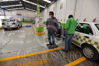 Este lunes reanudaron actividades los verificentros en el Estado de México al estar en semáforo naranja por la contingencia por COVID-19, los automovilistas podrán llevar sus unidades a verificar al concertar una cita por internet o vía telefónica; las medidas higiénicas en los verificentros son rigurosas para evitar algún contagio por coronavirus. FOTO: CRISANTA ESPINOSA AGUILAR /CUARTOSCURO.COM