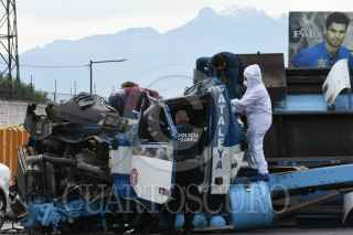 VALLE DE CHALCO, ESTADO DE MÉXICO, 27JULIO2020.- Un muerto y dos lesionados fue el saldo de la volcadura de una pipa de agua a la altura del kilómetro 23 de la autopista México-Puebla, con dirección a la ciudad, en el municipio de Valle de Chalco. FOTO: CRISTIAN HERNÁNDEZ/CUARTOSCURO.COM