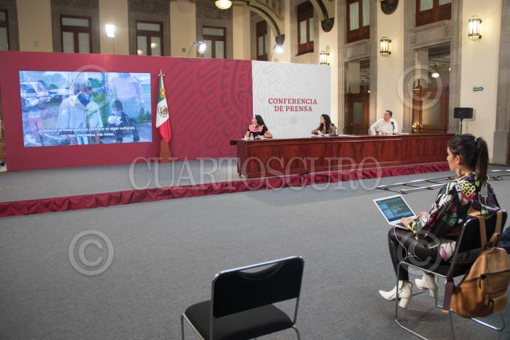 CIUDAD DE MÉXICO, 27JULIO2020.- Maria Luisa Albores González, secretaria de Bienestar; Luisa María Alcalde Luján, secretaria del Trabajo y Previsión Social, y Gabriel García Hernández, coordinador general de Programas para el Desarrollo de la Presidencia de la República, durante las conferencias del Bienestar, en Palacio Nacional. FOTO: VICTORIA VALTIERRA/CUARTOSCURO.COM