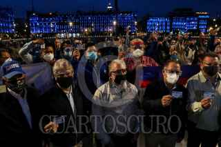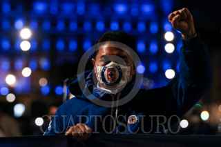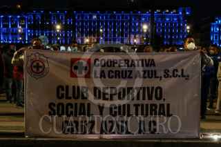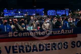 CIUDAD DE MÉXICO, 258JULIO2020.- Integrantes de la cooperativa Cruz Azul, encabezados por Jorge Hernández (vocero), se manifestaron frente a Palacio Nacional para expresar su apoyo a Billy Álvarez, presidente de Cruz Azul, ante las acusaciones por manejo ilegal de recursos. Los integrantes expresaron que esto ha afectado a los integrantes de la cooperativa pero que confían plenamente en las autoridades para dar solución a los hechos. FOTO: GALO CAÑAS /CUARTOSCURO.COM