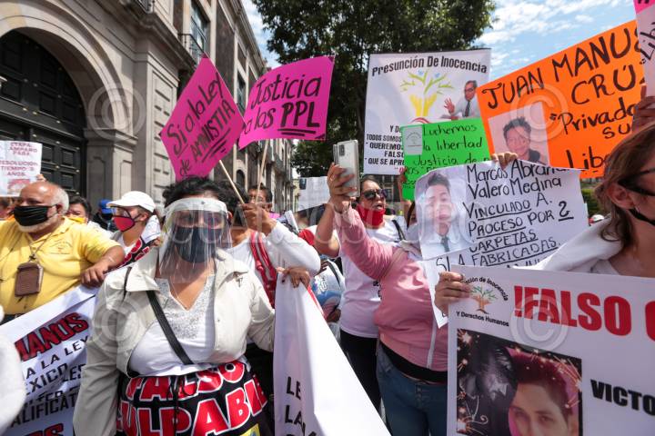 Integrantes del movimiento “Presunción de Inocencia y Derechos Humanos” se manifestaron en el Tribunal Superior de Justicia del Estado de México exigiendo se apruebe la Ley de Amnistía que se analiza en el Congreso estatal, exigen la liberación de “falsos culpables” que se encuentran en los penales del Edomex. FOTO: CRISANTA ESPINOSA AGUILAR /CUARTOSCURO.COM