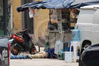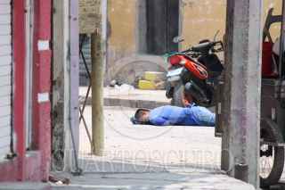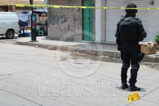 CELAYA, GUANAJUATO, 28JULIO2020.- Los ataques a negocios en Celaya por el cobro de piso continúan. En esta ocasión tres taqueros fueron asesinados. El ataque ocurrió en el Barrio de la Resurrección, en la esquina de las calles Sosténes Rocha y Pino Suárez, a unos metros del Tianguis de los Lunes. Al mediodía y en una de las zonas comerciales más concurridas de la ciudad fueron asesinados los tres hombres cuando atendían a unos comensales. A un lado del carrito quedaron los tres cuerpos sin vida y con lesiones de bala en la cabeza. FOTO: DIEGO COSTA/CUARTOSCURO.COM