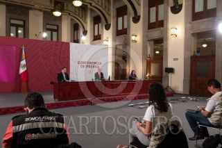 CIUDAD DE MÉXICO, 28JULIO2020.- Hugo López-Gatell Ramírez, subsecretario de Prevención y Promoción de la Salud; José Luis Alomía Zegarra, director general de Epidemiología y Alethse de la Torre Rosas, directora general del Centro Nacional Para la prevención y el Control del VIH y el Sida, durante la conferencia de informe COVID- 19 que se lleva a cabo en el Palacio Nacional. FOTO: ANDREA MURCIA/CUARTOSCURO.COM