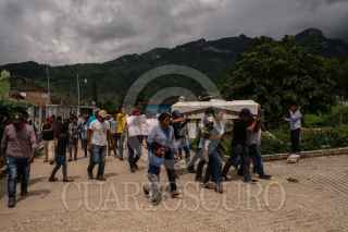IXTAPA, CHIAPAS, 28JULIO2020.- El cuerpo de Adolfo Gómez fue velado y enterrado en la comunidad de Chigtón, lugar de donde era originario, el hombre de 63 años fue detenido y encarcelado el pasado 15 de julio. Las autoridades estatales entregaron el cuerpo ayer a sus familiares con la información de que el hombre se había suicidado dentro del Cereso 5 en San Cristóbal de las Casas, acusado de pertenecer a una red de trata de personas desmantelada por la Fiscalía Estatal, durante un operativo, estrategia implementada por esta dependencia en la búsqueda de Dylan, un niño de 2 años desaparecido hace treinta días. Los familiares informaron que él, es abuelo de once de los 23 niños “rescatados” durante dicho operativo. Afirman que el cuerpo del señor Adolfo tiene señales de tortura y que él no se suicidaría. Las cinco familias a las que pertenecen los 23 niños son originarias de Ixtapa, pero vivían en una casa rentada en la zona norte del municipio de San Cristóbal de las Casas, todos ellos se dedican a la venta de artesanías en el centro, seis integrantes de la familia tienen órdenes de aprehensión en su contra y cuatro están presos por el mismo delito por el que Adolfo Gómez Gómez lo estaba. FOTO: ISABEL MATEOS /CUARTOSCURO.COM