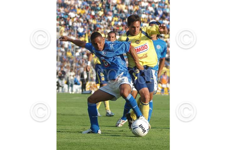 MÉXICO, D.F. 15ABRIL2006.- Aarón Padilla festeja el segundo gol de equipo en el partido de la continuación de la jornada 15 del torneo de clausura 2006 en el que las Águilas del América vencieron 3 goles a 1 a la máquina celeste de la Cruz Azul en el estadio Azul. FOTO: Iván Stephens/CUARTOSCURO.COM