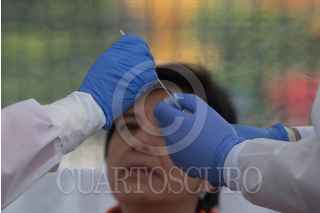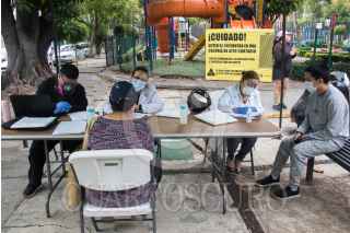 CIUDAD DE MÉXICO, 29JULIO2020.- Personas acudieron a realizarse la prueba de Covid-19 en el Parque San Simón en donde fue colocado un kiosko de la salud, que forma parte de la estrategia del Gobierno de la Ciudad de México de aplicar test en colonias con altos índices de casos de esta enfermedad. La prueba se les hace después de una valoración médica y no necesariamente se tiene que ser vecino de la colonia o alcaldía. Una vez que se ha detectado una caso se procede a visitar su domicilio en donde se recomienda que toda la familia o personas que estuvieron en contacto con el paciente positivo se ponga en aislamiento por quince días, se les brinda una despensa, un kit de salud y una tarjeta de ayuda económica para que solo salgan a actividades indispensable durante su cuarentena. FOTO: MOISÉS PABLO/CUARTOSCURO.COM