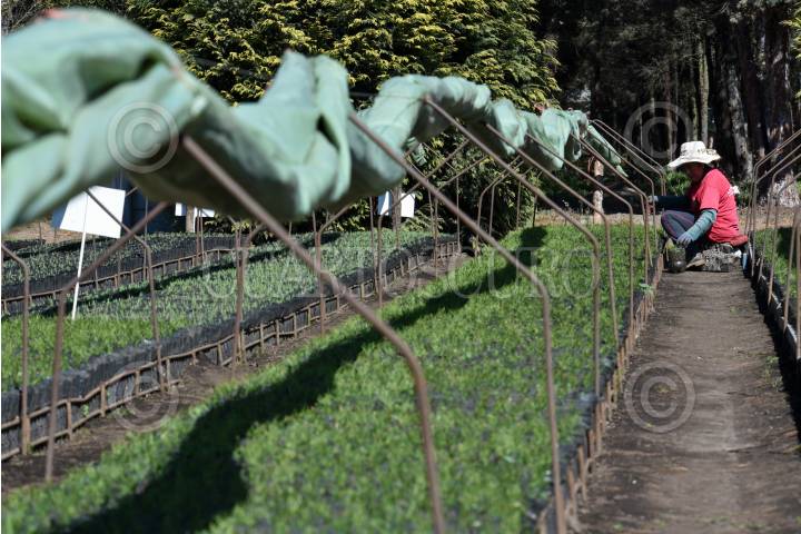 METEPEC, ESTADO DE MÉXICO, 29JULIO2020.- En los Viveros de PROBOSQUE se lleva a cabo el proceso productivo de plata forestal con el fin de abastecer los programas de reforestación, produciendo plantas de distintos tipos de climas como oyamel, pino de las alturas, cedro blanco, encino, parota, cedro rojo, pino triste, pino prieto fresno, acacia, trueno entre otras. El proceso inicia con la colecta de semilla en el campo, en el vivero se acondiciona el área de producción, preparación de sustrato y llenado de charolas, se realiza la siembra, una vez germinada se lleva a cabo la aplicación de fertilizantes, riego deshierbe y control fitosanitario. El periodo de crecimiento es de 12 a 18 meses dependiendo de cada especie. De acuerdo a la página de PROBOSQUE en el 2019 se produjeron 15,350,691 plantas las cuales serán utilizadas para las temporadas de reforestación del 2020 y 2021. En Áreas naturales protegidas y parques del Estado de México se inició el ejercicio de reforestación como el Parque Sierra Morelos, y para este año se pretenden llegar a la meta de 450 mil árboles plantados en 450 hectáreas de superficie en el Estado de México. FOTO: CRISANTA ESPINOSA AGUILAR /CUARTOSCURO.COM