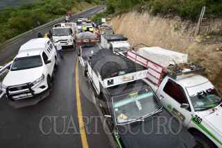 CHILPANCINGO, GUERRERO, 29JULIO2020.- Con camionetas llenas de basura, pepenadores y choferes de camionetas de "la basura jefa" de Chilpancingo, cerraron el acceso al relleno sanitario de la capital del estado, para exigir la liberación de dos de sus compañeros, indicaron que la detención fue hecha de manera arbitraria por parte de policías municipales y del estado, quienes sin razón alguna y sin informarles el motivó de su detención, se lo llevaron a la delegación de la Procuraduría General de la República (PGR); los inconformes señalaron que ya han visitado a sus compañeros quien es muestran señales de haber sido golpeados. FOTO: DASSAEV TÉLLEZ ADAME/CUARTOSCURO.COM