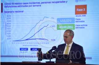 CIUDAD DE MÉXICO, 29JULIO2020.- Hugo López-Gatell Ramírez, Subsecretario de Prevención y Promoción de la Salud, y Jorge Alcocer Varela, secretario de Salud federal, durante conferencia del informe diario de la pandemia de coronavirus (covid-19) en el país que indica: 408,449 casos confirmados; 45,361 defunciones y 89,978 sospechosos. FOTO: MARIO JASSO /CUARTOSCURO.COM