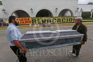 GUADALAJARA, JALISCO, 30JULIO2020.- Vecinos de El Salto, Juanacatlán, Poncitlán y población que habita a las orillas del Río Santiago en San Pedro Itzicán (Agua Caliente), Chalpicote y Mezcala asi como representantes de algunos grupos ambientalistas, protestaron a las afueras de Casa Jalisco, por la improbable declaratoria de emergencia ambiental y sanitaria por la contaminación de la cuenta Lerma-Chapala-Santiago y para exigir a las autoridades estatales acuerdos que enmienden con urgencia la insalubridad de dichos vasos lacustres. FOTO: FERNANDO CARRANZA GARCIA GARCIA / CUARTOSCURO.COM