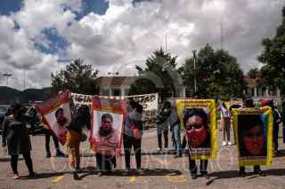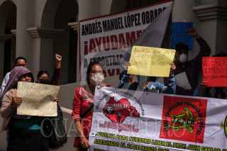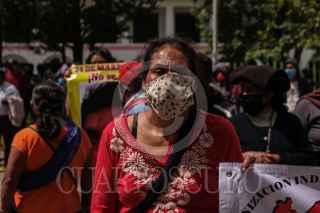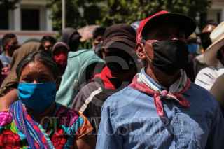 SAN CRISTÓBAL DE LAS CASAS, CHIAPAS, 30JULIO2020.- Integrantes del Frente Campesino Popular de Chiapas, organizaron diferentes actos políticos en Comitán, Las Margaritas y frente al Palacio de Justicia de este municipio, realizaron en las escalinatas de la entrada al recinto un mitin, exiguiendo al gobierno justicia por la muerte de Juan Carlos Jiménez Velasco, Roque Alberto Calvo López, Juan Gómez Gómez y Jorge Isaac Villatoro y libertad a Juan Hernández López y Sebastián Gómez Hernández, presos en el CERSS Num. 5. FOTO: ISABEL MATEOS /CUARTOSCURO.COM