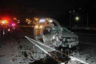 Tlalnepantla, Estado de México, 31 julio 2020. Una mujer que viajaba como copiloto de un auto Jetta perdió la vida al impactar el auto contra las barras metálicas ubicadas en Insurgentes Norte a la altura de la colonia C.T.M. Culhuacán en perímetro de Tlalnepantla. Foto: Luis Carbayo/cuartoscuro.com