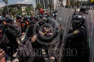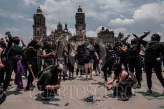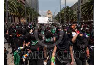 CIUDAD DE MÉXICO, 31JULIO2020.- Colectivas feministas marcharon como apoyo a las mujeres de Veracruz y de los estados dónde se ha negado por mayoría de votación de legisladores el acceso al aborto legal, seguro y gratuito. El contingente partió de Monumento a la Revolución hasta la plancha del Zócalo Capitalino, en el transcurso hubo percances entre manifestantes y elementos de seguridad. FOTO: ANDREA MURCIA/CUARTOSCURO.COM