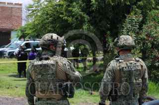 CORTAZAR, GUANAJUATO, 31JULIO2020.- Gilberto Cornejo, policía municipal de Cortazar, fue asesinado a balazos en su domicilio y su hijo de 15 "levantado" por hombres armados. Antes del mediodía el salió salió de turno y se dirigió a su casa en la colonia Guanajuato. Cuando llegó a la calle Yuriria hombres armados lo esperaban. Los agresores asesinaron al oficial y se llevaron al adolescente. Un fuerte operativo de la Marina, Fuerzas de Seguridad Pública del Estado, Agentes en Investigación Criminal y Policía Municipal se registró en la zona para capturar a los autores. FOTO: DIEGO COSTA /CUARTOSCURO.COM
