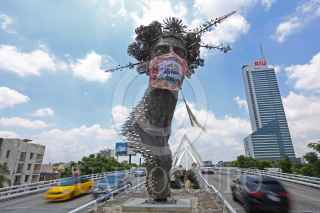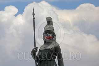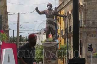 GUADALAJARA, JALISCO, 31JULIO2020.- La Cámara de Comercio de Guadalajara, la Universidad de Guadalajara y 500 instituciones que se sumaron, impulsan una campaña de concientización social en Jalisco, la cual pretende frenar la cadena de contagios de Covid-19 en el estado, la misma consiste en crear conciencia en la ciudadanía en cuanto al uso de cubrebocas, por lo cual fueron colocados cubrebocas con la leyenda “Estamos juntos y lo traemos bien puesto” a los monumentos mas representativos de Guadalajara, tales como los son la Minerva, la Madre Patria, Miguel Hidalgo entre otros. FOTO- FERNANDO CARRANZA GARCIA / CUARTOSCURO.COM