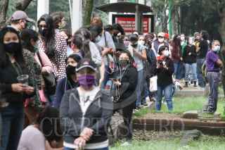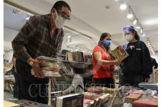 CIUDAD DE MEXICO, 01AGOSTO2020.- Decenas de personas realizaron filas desde tempranas horas del sábado de más de dos cuadras, con el objetivo de aprovechar la oferta del 50% en toda la tienda, esto luego de que la librería "Gandhi Oportunidades" ubicada en Avenida Miguel Anguel de Quevedo 134, anunciara su cierre debido a que dicho espacio será adaptado para sus oficinas corporativas. FOTO: ROGELIO MORALES /CUARTOSCURO.COM