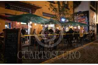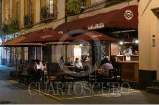 CIUDAD DE MÉXICO, 01AGOSTO2020.- Continua el semáforo naranja la ciudad por lo que restaurantes y bares de la CDMX ampliarán sus horarios la siguiente semana, la capacidad de aforo será al 30 por ciento y al 40 por ciento si cuentan con espacio al aire libre. En la calle regina bares operan hasta las 10 pm. FOTO: ANDREA MURCIA /CUARTOSCURO.COM