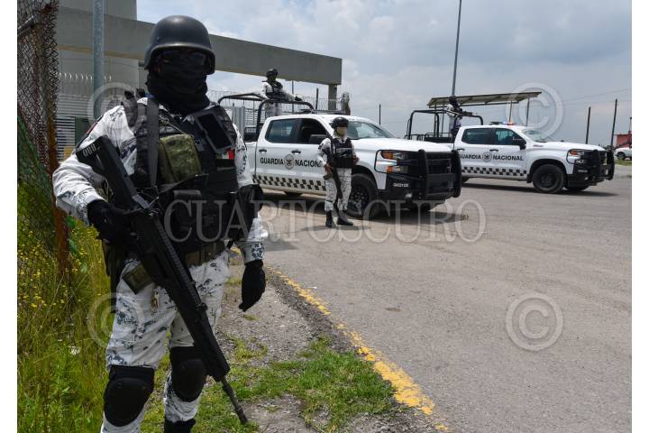 ALMOLOYA DE JUÁREZ, ESTADO DE MÉXICO, 02AGOSTO2020.- Elementos de la Guardia Nacional realizan rondines en el Centro Federal de Readaptación Social Número 1 “El Altiplano”, después de que fue anunciado por Alfonso Durazo, Secretario de Seguridad Pública y Protección Ciudadana, que sería trasladado José Antonio “N” alias “El Marro” líder del cartel de Santa Rosa de Lima tras su detención esta madrugada en Santa Cruz de Juventino Rosas, Guanajuato. FOTO: CRISANTA ESPINOSA AGUILAR /CUARTOSCURO.COM