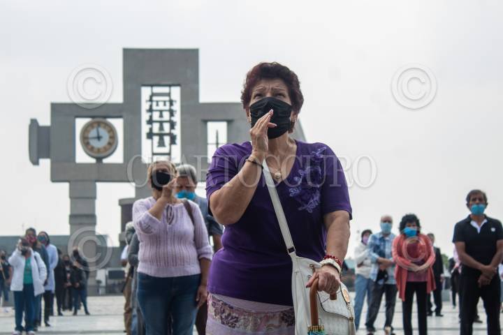 CIUDAD DE MÉXICO, 02AGOSTO2020.- Como medida preventiva para contener la pandemia, la misa dominical en la Basílica de Guadalupe se celebró al exterior del reciento para evitar contagios por COVID-19. FOTO: MAGDALENA MONTIEL/ CUARTOSCUO.COM