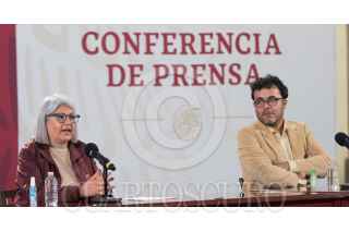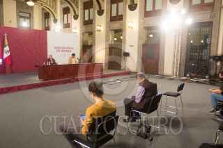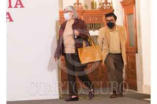 CIUDAD DE MÉXICO, 02AGOSTO2020.- Graciela Márquez, Secretaria de Economía en la conferencia de prensa esta tarde, en el salón tesorería de Palacio Nacional. La acompaña un funcionario de Hacienda. FOTO: VICTORIA VALTIERRA/CUARTOSCURO.COM