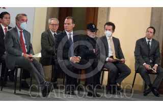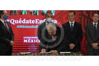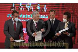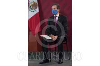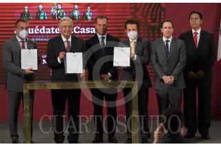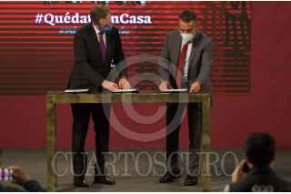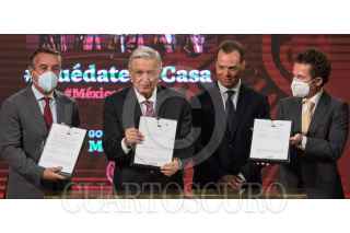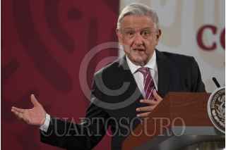 CIUDAD DE MÉXICO, 03AGOSTO2020.- El Presdiente de México Andrés Manuel López Obrador, durante la conferencia de todas las mañanas, en el salón tesorería de Palacio Nacional. Empresarios dueños de televisoras, firmaron un convenio con el primer mandatario del país, para transmitir clases en vivo. FOTO: VICTORIA VALTIERRA/CUARTOSCURO.COM