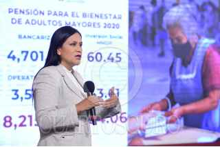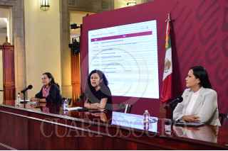 CIUDAD DE MÉXICO, 03AGOSTO2020.- Luisa María Alcalde Luján, secretaria del Trabajo y Previsión Social; María Luisa Albores González, secretaria de Bienestar, y Ariadna Montiel Reyes, subsecretaria de Desarrollo Social y Humano, durante las conferencias del Bienestar, en Palacio Nacional. FOTO: PRESIDENCIA/CUARTOSCURO.COM
