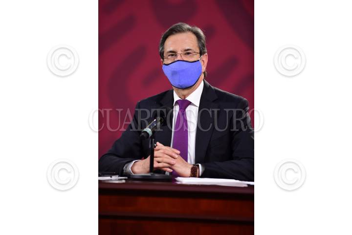 CIUDAD DE MÉXICO, 03AGOSTO2020.- Esteban Moctezuma Barragán, secretario de Educación Pública; Marcos Bucio Mújica, subsecretario de Educación Básica, y Enrique Quiroz Acosta, titular de la Unidad de Asuntos Jurídicos y Transparencia, durante las conferencias de la Educación en Palacio Nacional. FOTO: PRESIDENCIA/CUARTOSCURO.COM