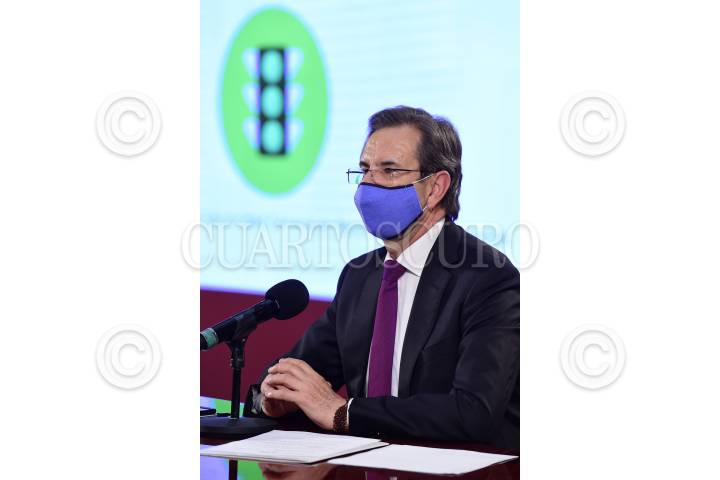CIUDAD DE MÉXICO, 03AGOSTO2020.- Esteban Moctezuma Barragán, secretario de Educación Pública; Marcos Bucio Mújica, subsecretario de Educación Básica, y Enrique Quiroz Acosta, titular de la Unidad de Asuntos Jurídicos y Transparencia, durante las conferencias de la Educación en Palacio Nacional. FOTO: PRESIDENCIA/CUARTOSCURO.COM