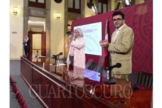 CIUDAD DE MÉXICO, 03AGOSTO2020.- Graciela Márquez Colín, secretaria de Economía; Sergio Silva Castañeda, titular de la Unidad de Inteligencia Económica Global, y Luis Godoy Rueda, coordinador de Mercado Solidario, durante la conferencia de Créditos en Palacio Nacional. FOTO: PRESIDENCIA/CUARTOSCURO.COM