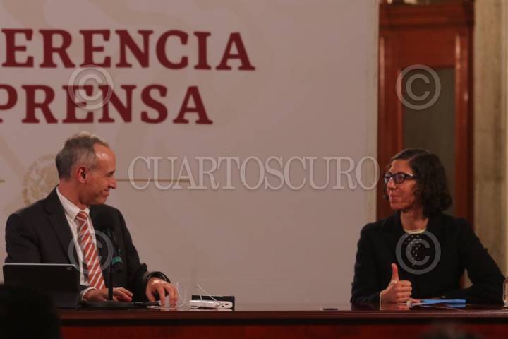 CIUDAD DE MÉXICO, 03AGOSTO2020.- José Luis Alomía, director General de Epidemiología; Hugo López-Gatell, subsecretario de la Secretaría de Salud, y Karla Berdichevsky, directora del Centro Nacional de Equidad de Género y Salud Reproductiva, encabezaron el informe diario sobre el avance de la pandemia del Coronavirus en Palacio Nacional. El total de muertes confirmadas en el país es de 48 012 casos. FOTO: GRACIELA LÓPEZ /CUARTOSCURO.COM