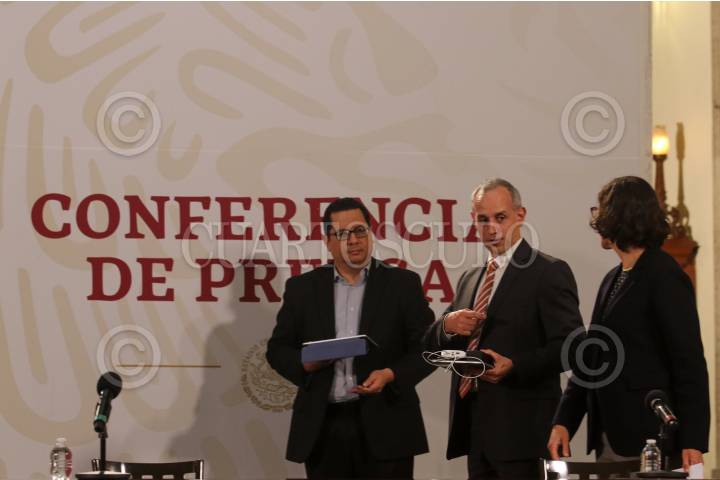 CIUDAD DE MÉXICO, 03AGOSTO2020.- José Luis Alomía, director General de Epidemiología; Hugo López-Gatell, subsecretario de la Secretaría de Salud, y Karla Berdichevsky, directora del Centro Nacional de Equidad de Género y Salud Reproductiva, encabezaron el informe diario sobre el avance de la pandemia del Coronavirus en Palacio Nacional. El total de muertes confirmadas en el país es de 48 012 casos. FOTO: GRACIELA LÓPEZ /CUARTOSCURO.COM