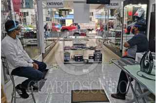 CIUDAD DE MÉXICO, 04AGOSTO2020.- Dos vendedores de una tienda de camisas esperan la primera venta del día, cuando ya son pasas las 2 de la tarde. Los comercios del Centro Histórico han reportado que ha pesar de la apertura sus ventas no levantan, y se quejan de que las medidas restrictivas aplicadas a este zona de la ciudad por la pandemia de Covid-19, no permiten que su actividad comercial se restablezca. FOTO: MOISÉS PABLO/CUARTOSCURO.COM