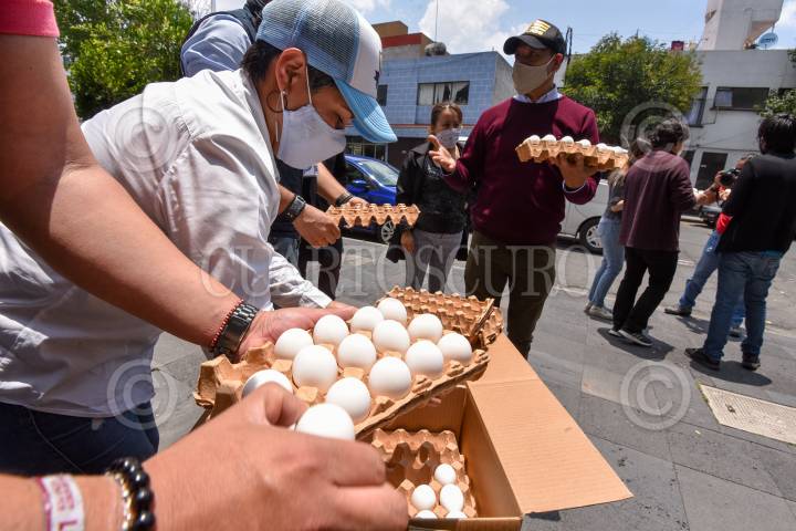TOLUCA, ESTADO DE MÉXICO, 04AGOSTO2020.- Integrantes del Movimiento Operación Hormiga apoyaron a músicos que se han quedado sin empleo a raíz de la contingencia por COVID-19 con huevos, producto de la canasta básica, les dieron kilo y medio o dos kilos a cada artista, algunos mostraban una fotografía de su instrumento musical o lo llevaban en físico; este movimiento ha ayudado a la población que se ha quedado sin empleo con comidas y despensas. FOTO: CRISANTA ESPINOSA AGUILAR /CUARTOSCURO.COM