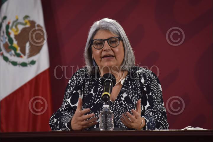 CIUDAD DE MÉXICO, 04AGOSTO2020.- Graciela Márquez, secretaria de Economía, y Rocío Mejía, titular del programa Tandas para al Bienestar, durante conferencia de prensa en la que se brindaron detalles sobre los microcréditos que el gobierno federal ha puesto en disposición durante la emergencia sanitaria por coronavirus (covid-19). FOTO: MARIO JASSO /CUARTOSCURO.COM